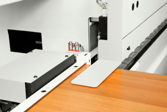 se ha consebido una máquina con cadena indudstrial de 1y ¼ un grupo redondeando con la función de refilador que permite redondear a 18 mt/min. Y un grupo encolador patentado por SCM modelo SGP que asegura una gran adherencia del panel con poca cantidad.